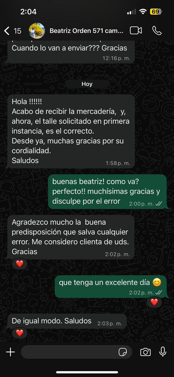 Si recibís el talle o producto equivocado/fallado comunícate a nuestro WhatsApp para tramitar el cambio.